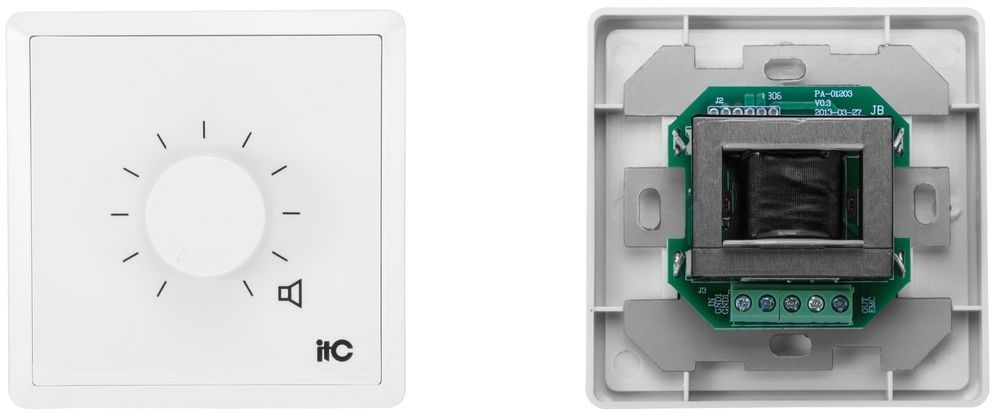T-674C ITC chiết áp điều chỉnh âm lượng hỗ trợ kết nối 3 dây, sử dụng thông báo, báo cháy và có công suất điều chỉnh tối đa 60W. Sử dụng với loa trở kháng cao 70 -100V.