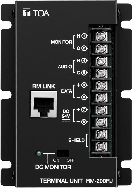 RM-200RJ một thiết bị chuyển đổi cổng kết nối RJ45 sang dạng cổng kết nối kiểu vít ốc dùng trong trường hợp muốn kéo Bàn gọi chọn vùng xa trung tâm và dùng dây dấn thường để giảm suy hao tín hiệu trên đường dây.