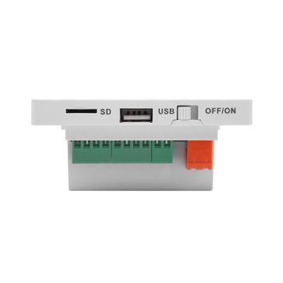 Sản phẩm hỗ trợ điều khiển từ xa hồng ngoại và có màn hình LED hiển thị. Bạn có thể xem giờ, tên bài hát và tổng số bài hát trên màn hình. Bạn cũng có thể điều khiển âm lượng, trạng thái hoạt động bằng các nút bấm và điều khiển từ xa. Sản phẩm rất phù hợp cho văn phòng, nhà hàng, cửa hàng, phòng ngủ, v.v.