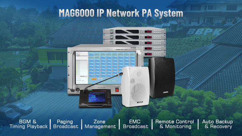 Hệ thống âm thanh công cộng IP MAG6000 là hệ thống âm thanh công cộng thông minh và tích hợp cao dựa trên công nghệ mạng máy tính, cấu trúc mô-đun và lớp.